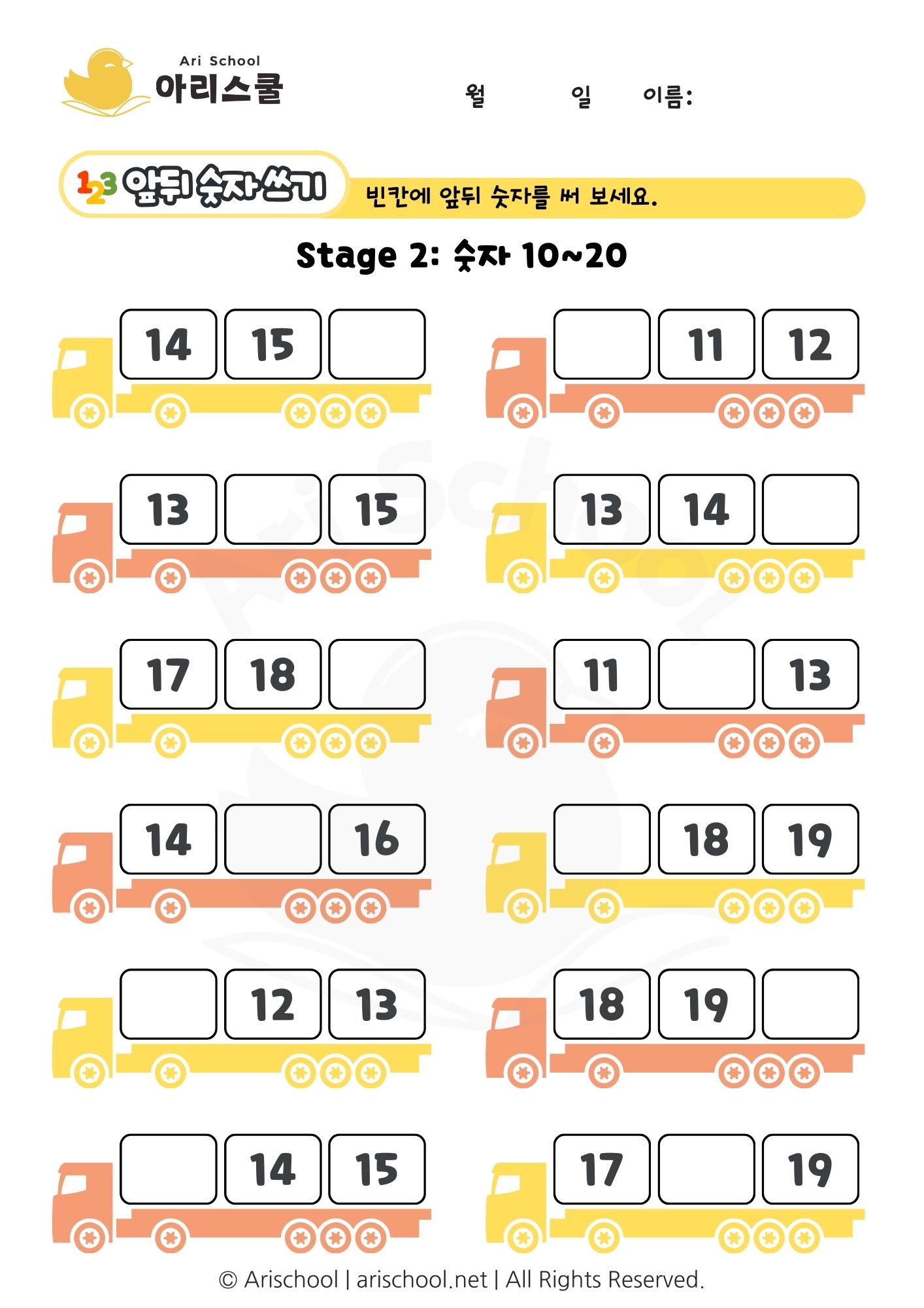 이 워크시트는 숫자를 보고 빈칸에 들어갈 알맞은 숫자를 추론하여 채우는 학습지입니다.