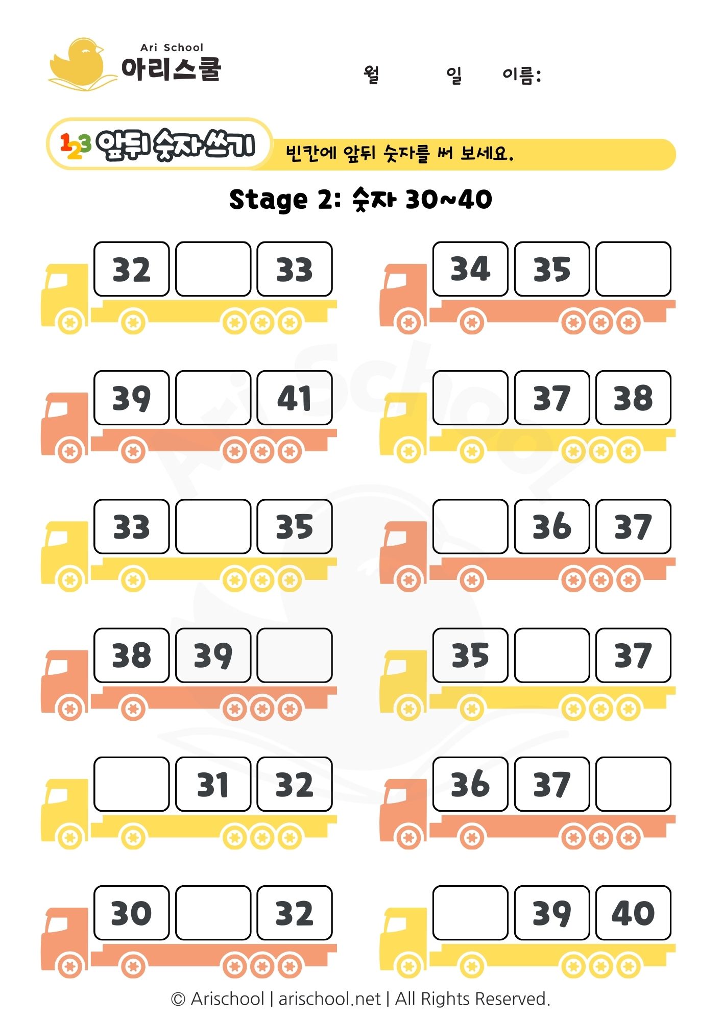 숫자 빈칸 채우기 숫자 30~40