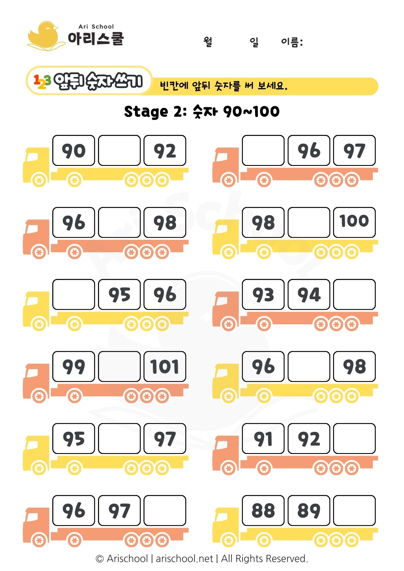 숫자 빈칸 채우기 숫자 90~100