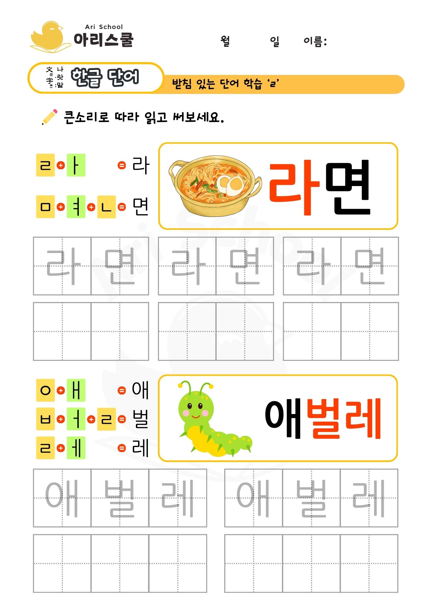 Word Writing (With Final Consonant) | Rieul (ㄹ)