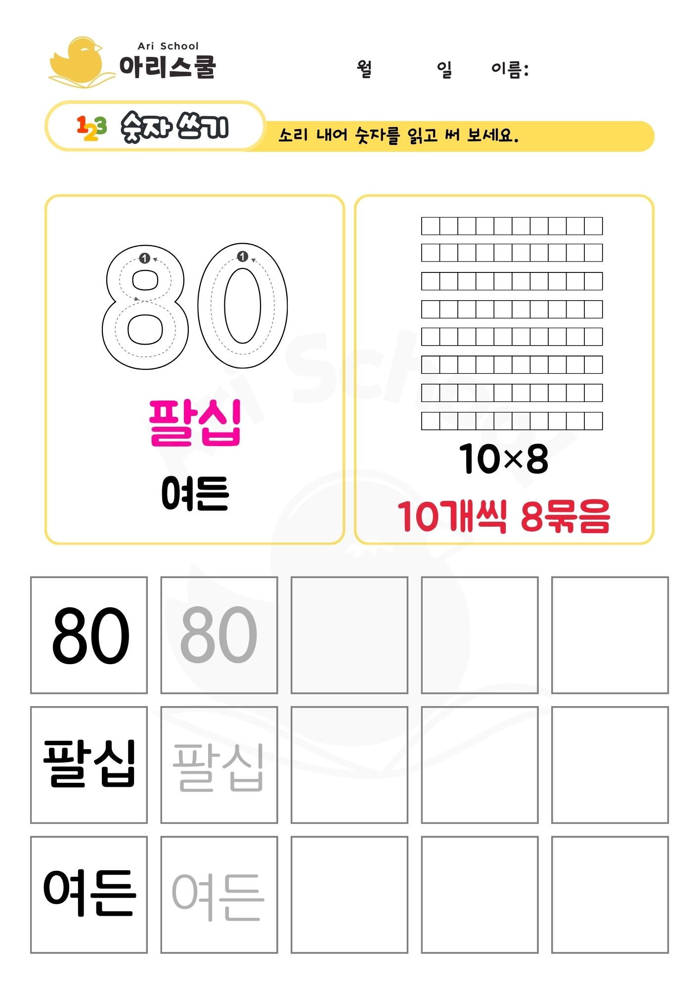 두 자리 숫자 쓰기 80