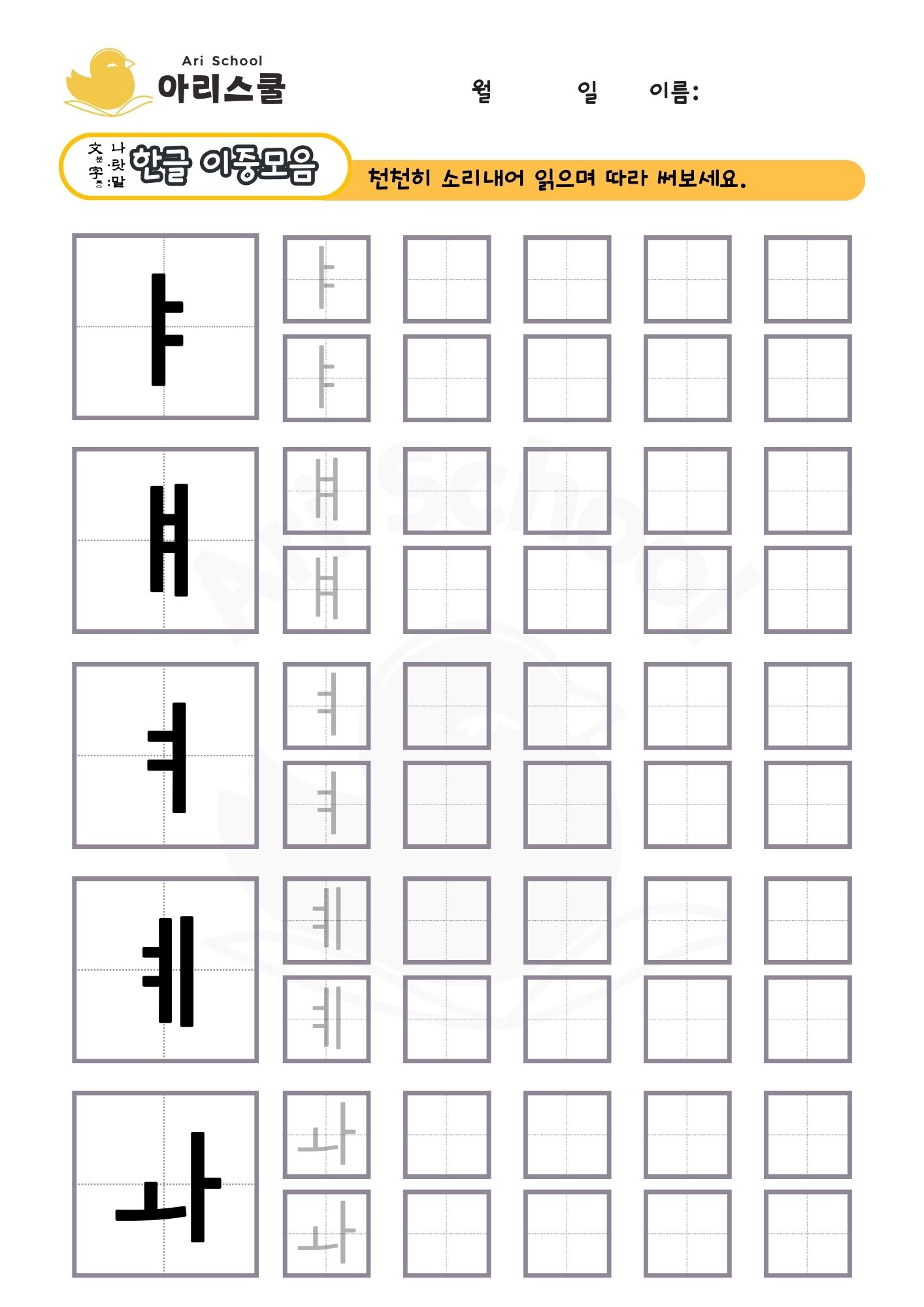 한글 이중 모음 쓰기
