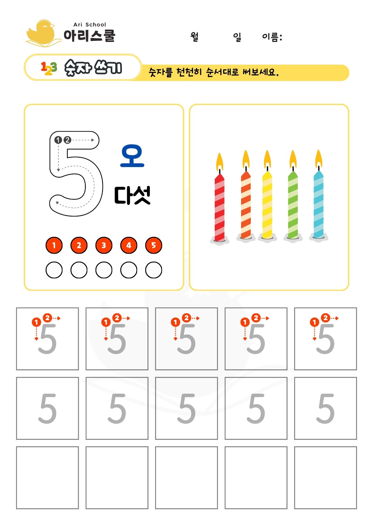 숫자 쓰기 5