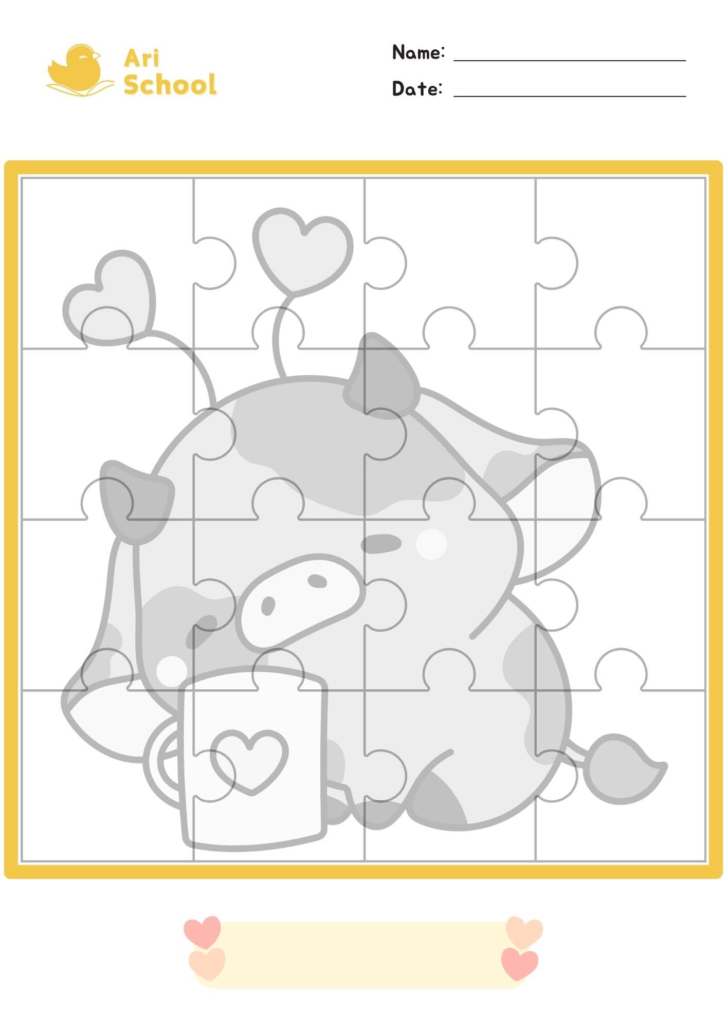 Once the puzzle is complete, they can glue or tape the pieces in place and write a title on their finished work.