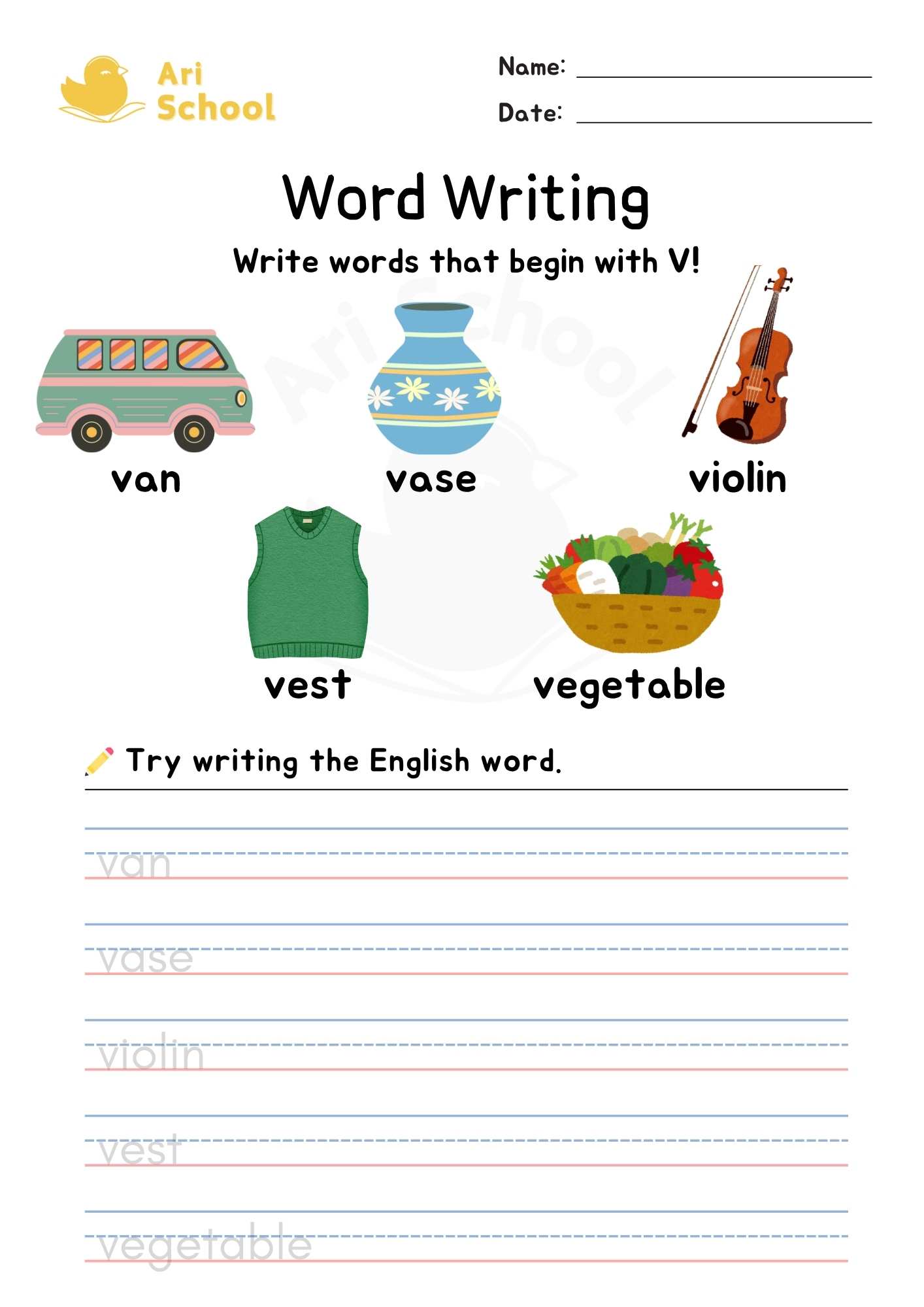 Practice reading and writing each word to build vocabulary and improve spelling.